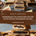 Homemade Fig Newtons are soft, chewy cookies filled with a luscious fig jam made from dried mission figs, infused with warm spices and a hint of bourbon. The dough combines all-purpose and whole wheat flours for a wholesome texture, enriched with brown sugar and vanilla. These classic treats are rolled with a sweet fig filling, baked to golden perfection, and sliced into perfect snack-sized cookies, ideal for enjoying with tea or as a satisfying homemade dessert.