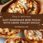 This recipe for Homemade Mini Pizzas offers a quick and easy way to enjoy delicious, individual-sized pizzas made from simple ingredients like self-rising flour and Greek yogurt. Perfect for a snack or meal, these mini pizzas are customizable with your favorite toppings and require minimal preparation and baking time.