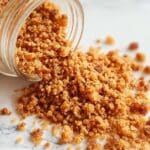 Store your homemade toffee bits in an airtight container at room temperature for up to two weeks. Keep them away from humidity to maintain their crisp texture. Use them as a topping straight from the container—no reheating needed.