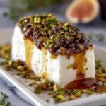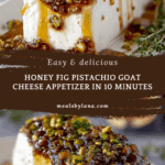This Honey Fig Pistachio Goat Cheese Appetizer combines creamy goat cheese with sweet figs, crunchy pistachios, and a touch of honey for an elegant and flavorful starter. It’s quick to prepare and perfect for holiday gatherings or any festive occasion.