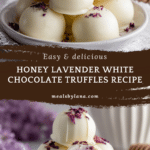 Keywords: honey lavender truffles, white chocolate truffles, homemade truffles, no-bake truffles, floral chocolate dessert