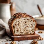 Keywords: sourdough bread, honey walnut bread, artisan bread, homemade bread, sourdough recipe, toasted walnuts, cinnamon bread