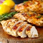 - Rest and Serve: Cover the chicken loosely with foil and let it rest for 5 minutes. Slice and serve garnished with fresh thyme, chopped parsley, and lemon slices if desired.