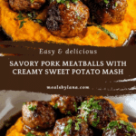 Keywords: pork meatballs, sweet potato mash, bourbon maple sauce, comfort food, easy dinner, stovetop recipe