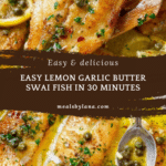 This Lemon Garlic Butter Swai Fish recipe features tender swai fillets pan-fried to perfection and topped with a vibrant lemon garlic butter sauce with capers, ginger, and fresh parsley. Ready in just 30 minutes, it’s an easy yet flavorful seafood dish perfect for a quick weeknight dinner or a special occasion.