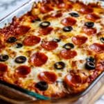 Keywords: low carb pizza casserole, keto pizza bake, ground beef casserole, easy low carb dinner, pizza casserole recipe