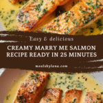 Marry Me Salmon is a quick and elegant dish featuring tender salmon fillets baked in a creamy, garlicky sauce that’s packed with flavor. Perfect for a weeknight dinner or a special occasion, this recipe promises a rich and satisfying meal in just 25 minutes.