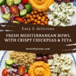 Keywords: Mediterranean bowl, quinoa bowl, roasted chickpeas, hummus bowl, healthy lunch, vegetarian recipe, easy Mediterranean recipe