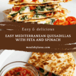 Keywords: Mediterranean quesadilla, spinach, feta, mozzarella, easy quesadilla, vegetarian snack, quick lunch