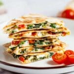 These Mediterranean Quesadillas combine fresh veggies, creamy feta, and melted mozzarella cheese folded inside warm tortillas for a flavorful and quick meal. Perfectly grilled to a golden crisp on the stove, they are a delicious twist on traditional quesadillas with a Mediterranean flair.