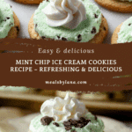 These Mint Chip Ice Cream Cookies are a delightful twist on classic sugar cookies, featuring a refreshing peppermint flavor and mini chocolate chips in both the cookie and frosting. Finished with a fluffy whipped cream topping, they’re perfect for any occasion where you want a cool, minty treat.