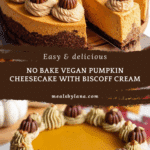 Keywords: vegan pumpkin cheesecake, no bake cheesecake, vegan dessert, pumpkin dessert, biscoff crust, dairy-free cheesecake, vegan pumpkin recipes