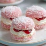 - Assemble Cakes: Spoon whipped cream onto one half of a jelly-coated cake and sandwich it together with another to form the classic pink jelly cake shape.