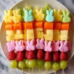It’s recommended to assemble Peep fruit kabobs shortly before serving to maintain their texture and prevent the Peeps from melting or the fruit from releasing too much juice.