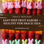 Keywords: Peep fruit kabobs, fruit skewers, marshmallow candy, healthy dessert alternative, easy snack