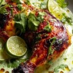 This Peruvian Chicken with Creamy Green Sauce is a vibrant and flavorful roasted dish featuring a perfectly seasoned whole chicken paired with a zesty, creamy cilantro jalapeño sauce. The chicken is rubbed with a blend of cumin, paprika, garlic powder, and lime juice, then roasted to juicy perfection. The green sauce made from mayonnaise, sour cream, jalapeño, cilantro, and lime adds a refreshing and spicy contrast, making this a standout meal that’s perfect for family dinners or special occasions.