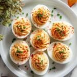 - Garnish and Serve: Sprinkle paprika on top of the filled eggs for color and a mild smoky flavor, then garnish with chopped fresh chives. Chill before serving for optimal flavor and texture.