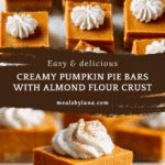 Keywords: pumpkin pie bars, almond flour crust, gluten free pumpkin dessert, healthy pumpkin bars, coconut milk pumpkin pie, maple syrup pumpkin pie