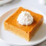 - Serve: Cut the chilled pumpkin pie bars into squares. Optionally, top each bar with a dollop of whipped cream before serving for an extra creamy touch.