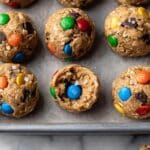 Quick Monster Cookie Protein Balls are no-bake, bite-sized snacks that combine the nostalgic flavors of monster cookies with a nutritious boost. Made with creamy natural peanut butter, vanilla protein powder, oats, chia seeds, honey, and fun mini chocolate chips and candies, these protein balls are perfect for a quick energy boost, post-workout snack, or kid-friendly treat. Easy to make in about 15 minutes, they are perfect for meal prep and can be stored in the fridge or freezer for convenient grab-and-go enjoyment.