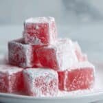 Rose Water Turkish Delight is a classic, fragrant treat that’s soft, chewy, and subtly floral. This delightful confection, dusted with powdered sugar, makes a perfect sweet snack or an elegant gift for friends and family.