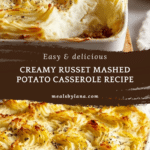 This Russet Mashed Potato Casserole is a creamy, rich side dish made with fluffy russet potatoes, cream cheese, sour cream, and garlic. Baked with a buttery topping, it’s perfect for potlucks, holidays, or cozy family dinners. Easy to prepare ahead and loved by all, it turns classic mashed potatoes into something special.