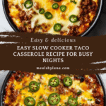 Keywords: slow cooker taco casserole, easy taco casserole, ground beef casserole, slow cooker recipes, Mexican casserole, taco dinner