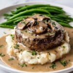 Keywords: Smothered Hamburger Steak, Hamburger Steak Recipe, Comfort Food, Mushroom Gravy, Easy Dinner, Homestyle Meal