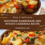 This Southern Hamburger and Potato Casserole is a comforting, hearty dish perfect for weeknight dinners. Layers of seasoned ground beef, tender potatoes, and creamy mushroom sauce topped with cheddar and crunchy breadcrumbs make it a flavorful family favorite.