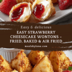 Keywords: Strawberry cheesecake wontons, fried cheesecake wontons, baked cheesecake wontons, air fryer cheesecake wontons, fruit dessert wontons, easy cheesecake recipe, strawberry dessert
