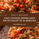 Keywords: stuffed pepper soup, ground beef soup, bell pepper soup, easy soup recipe, comforting soup, weeknight dinner