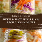 Keywords: slaw, pickle slaw, sweet and spicy slaw, side dish, summer salad, no-cook slaw, easy slaw recipe, quick side dish