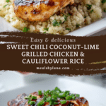 Keywords: Sweet chili chicken, coconut lime chicken, grilled chicken breasts, cauliflower rice recipe, low-carb dinner, healthy grilling recipe