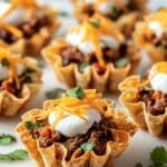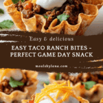 Taco Ranch Bites are flavorful mini taco cups that make the perfect portable snack. They combine seasoned ground beef, melted cheese, and a drizzle of ranch dressing for a delicious game day treat that everyone will love.