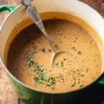 This smooth and flavorful turkey gravy recipe is made without drippings but still delivers classic savory taste. Made with a blend of fresh shallots, garlic, herbs, and turkey broth, this simple stovetop gravy thickens to perfection using a roux technique. Perfect for complementing your turkey, mashed potatoes, or stuffing, it’s a versatile and easy-to-make gravy that elevates any holiday meal.