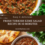 Ezme is a vibrant and fresh Turkish salad packed with finely chopped vegetables and bold flavors. It’s perfect as a mezze appetizer or a zesty accompaniment to grilled dishes. Ready in just 10 minutes, it brings a refreshing touch to any meal.