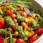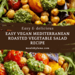This Vegan Mediterranean Roasted Vegetables Salad is a fresh, flavorful dish perfect for busy weeknights or relaxed weekend meals. It combines tender roasted eggplant, bell peppers, and cherry tomatoes with protein-packed chickpeas and peppery arugula, all tossed in a vibrant basil pesto dressing. Easy to make and adaptable, it’s a satisfying plant-based meal that everyone will love.