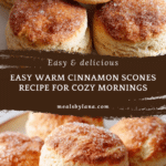 Deliciously warm and tender Cinnamon Scones infused with a perfect blend of cinnamon and a hint of vanilla. These scones are lightly sweetened, flaky, and feature optional juicy raisins or currants, making them ideal for a comforting breakfast or a delightful afternoon snack.
