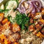 This Warm Tahini Grain Bowl with Sweet Potatoes and Tofu is a hearty and nutritious meal that’s perfect for any time of day. Packed with protein and vibrant flavors, it’s both satisfying and easy to prepare.